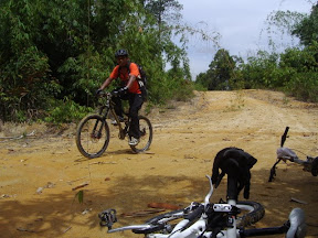 Bermula bab baru dalam kayuhan. Lega ya amat bila nampak laluan menurun. Dari puncak, laluan agak menguji, Curam dan berlurah air. Ah...lebih baik turun dari naik. Yang berani dan cekap, melorot turun dengan basikal. Yang lain, mengesot turun di sisi basikal.